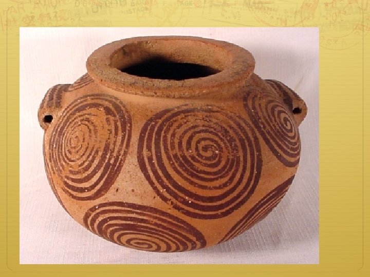 Neolithic Pottery This was the pre-wheel and pre-kiln era. The pottery was much thicker. They added items to them to make them studier – obsidian, straw, crushed shells, and manure. The pots were created by the women. Some textural designs were made by fingernails. They discovered how to incorporate ash into their clay to give it a glossy luster look.