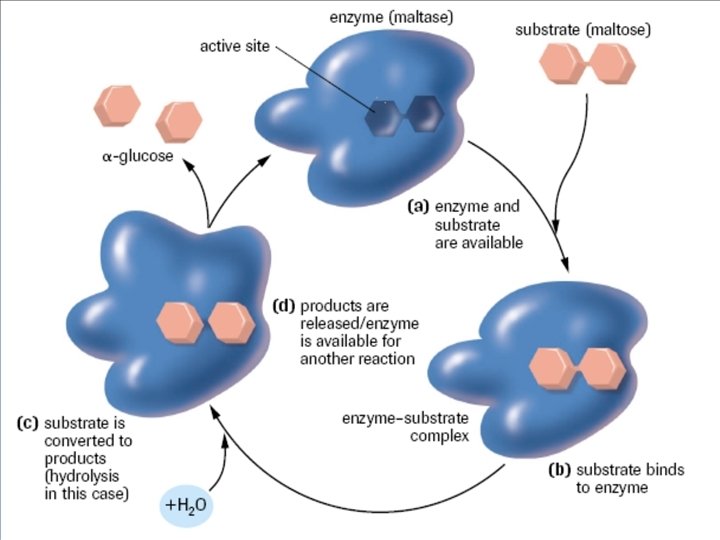 HOW ? ? The active site may: • Stretch or bend bonds making them easier to break • Bring two substances together in the correct position for a reaction to occur • Transfer electrons to or from the substrate destabilizing it • Add or remove hydrogen ions to or from the substrate (act like an acid or base)