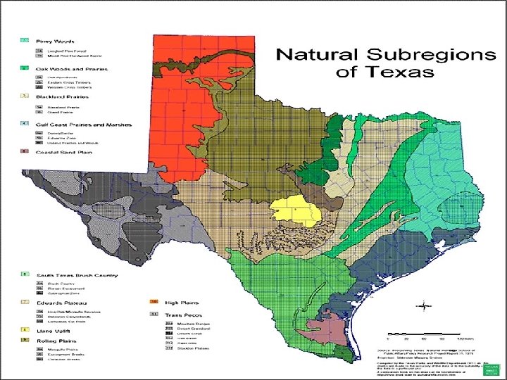 Oak Wood & Prairies north central and central Texas • Regional Average Rainfall: 26 -40 in. /yr • Temperature ranges from 63 to 70 o. F Patches of woodland running in a north and south direction are sprinkled throughout this grassland prairie • sometimes called “cross timbers” because these patches of treed areas cross strips of prairie grassland. The land is gently rolling to hilly.