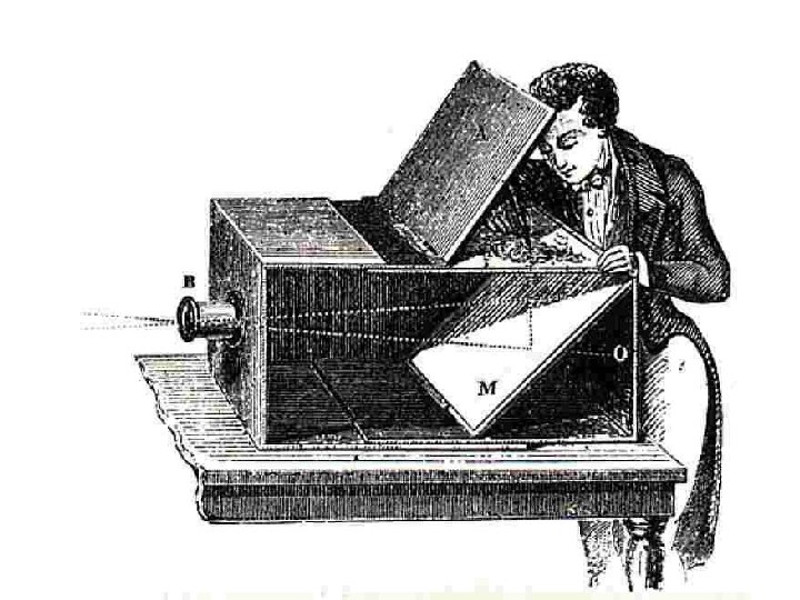 In the beginning…there was the camera obscura. • a darkened enclosure in which images of outside objects are projected through a small aperture or lens onto a facing surface. • A. k. a. a box with a hole. • The camera obscura was invented centuries before it became standard practice in 1544.