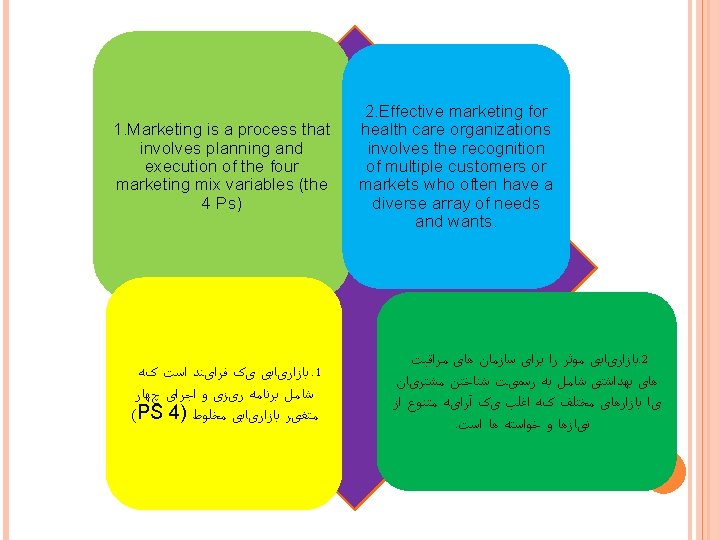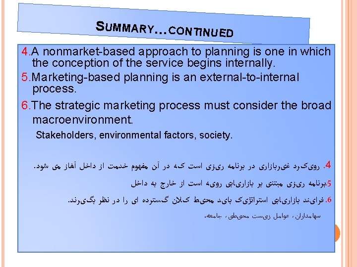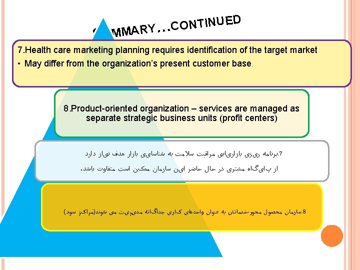 CHAPTER 1 LEARNIN G OBJECTIVES 4. Understand the dimensio ns of the env have an impa ironment tha ct on marketin t g strategy 5. Appreciate the ongoing r estructuring o care industry f the health ﺩﺭک. 4 ﺍﺑ ﻌ ﺎ ﺩ ﻣ ﺤ ی ﻂ ﺯیﺴ ﺖ ک ﻪ ﺑ ﺮ ﺍ ﺳﺘﺮﺍﺗژیﻬﺎی ﺑ ﺎ ﺯﺍ ﺭ ی ﺎﺑ ی ﺍﺛﺮ . ﻣی گﺬﺍﺭﻧﺪ ﻗﺪﺭﺩ. 5 ﺍﻧ ی ﺍ ﺯ ﺑ ﺎ ﺯ ﺳ ﺎ ﺯی ﻣﺪﺍﻭﻡ ﺩ ﺭ ﺻ ﻨ ﻌ ﺖ ﻣﺮﺍ ﻗﺒﺖ ﺳﻼﻣﺖ