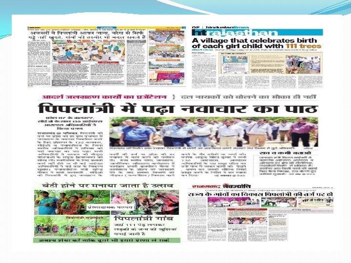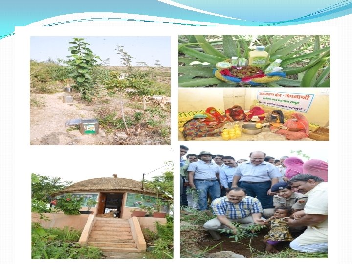 Piplantri: 2016 �Increased water table �Green, Clean ambient environment �Encroachment free pasture lands �Open defecation free panchayat �Fodder availability : increased milk yield �Livelihood generation through plant product processing : aloe vera products by SHGs �Better infrastucture �Participatory sustainable development