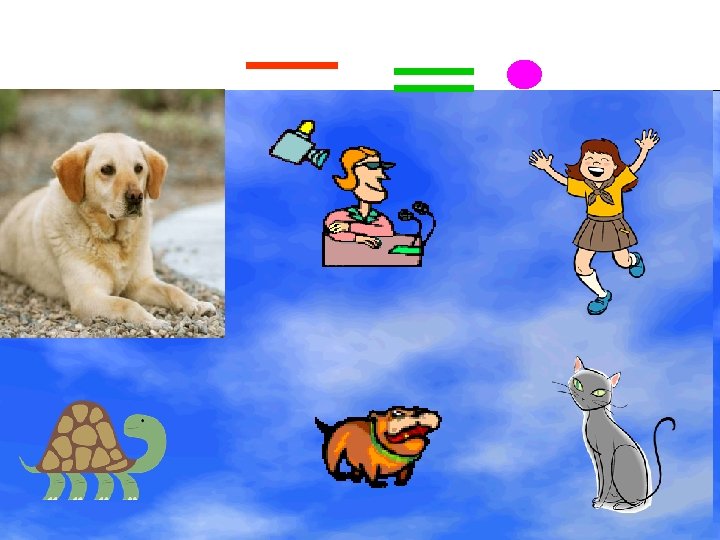 Sakiniai Sargis guli. Moteris kalba. Draugė bėga. Vėžlys vėžlina. Meškis loja. Murka murkia.