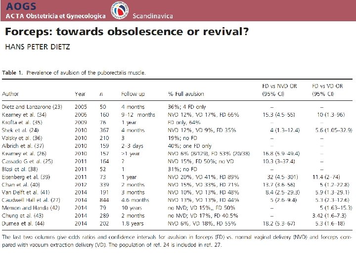 nárůst vaginálních extrakčních technik - nárůst (2 x) forcepsu v VEX Anglii v letech 2004 2014 má za následek nárůst počtu trauma MLA a análního svěrače o 100 000 Forceps - ženy rodící ve VB mají o % 30 -40% vyšší riziko MLA trauma než ženy v USA nebo Evropě Dietz HP et al. UOG 2014 44(S 1): 95.