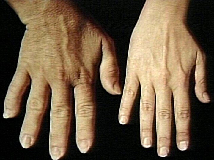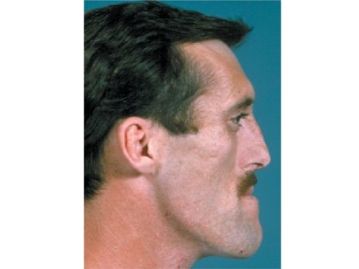 Ø Acromegaly Ø After fusion of epiphysis. Ø Enlargement of hands and feet. Ø Enlargement of membranous bones like cranium, nose, supraorbital ridges and lower jaw. Ø The lower jaw is protruded (Prognantism). Ø Bowing of spine (Kyphosis)
