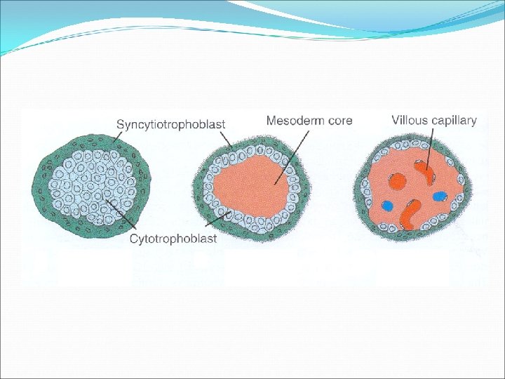 Placenta Maternal blood in the intervillous space Cross section of villus Fetal blood vessel Extra embryonic mesoderm Trophoblast