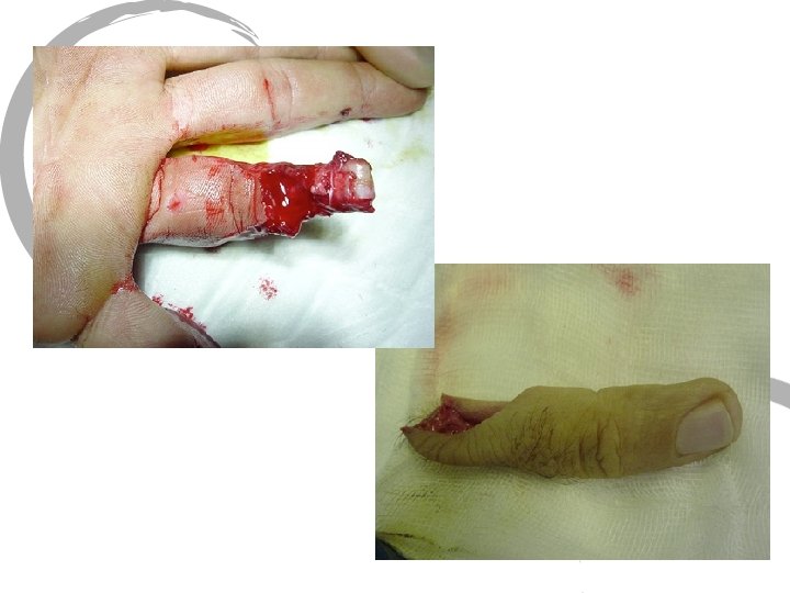 AMPUTATIONS : • Conditionnement du fragment amputé: • • 1) Linge sec. 2) Un sac en plastique. 3) Dans un second récipient contenant des glaçons. Réimplantation au-delà de 12 h possibles ! • Conditionnement du Moignon: • Bain bétadiné. • Pansement gras éventuellement compressif.