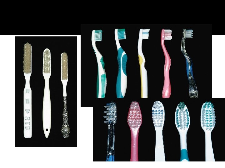 Elektrikli diş fırçaları � Hastanın kabulu ve kullanması iyi. �Tanıtılan hastaların. 88. 9% u bunu kullanmaya devam ediyor. �Fakat 5 -6 ay kullanımı takiben cazibesini kaybettiği için kullanımını bırakıyorlar.