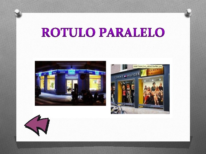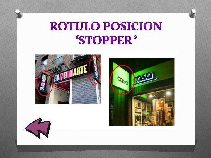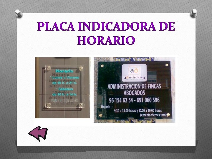 O O Rotulo en forma de vinilo O Rotulo paralelo O Rotulo en posición “stopper”. O Placa indicadora del horario.