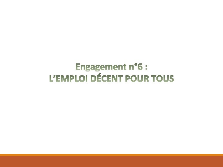 PRIORITE 12 – Favoriser la création d’emplois et promouvoir le travail décent EMPLOI Défis à relever: § Promouvoir la création massive d’emplois modernes et privés pour les jeunes et les femmes Objectifs sectoriels: § § Réformes: § § § Augmenter le taux de l’employabilité de la population active Atteindre le plein d’emploi Adopter un nouveau plan de promotion de la formation professionnelle Atteindre un cadre juridique et institutionnel de l’emploi adapté au marché de travail Mise à jour de la Politique Nationale de l’Emploi Création d’une Agence Nationale de l’Emploi avec ses démembrements régionaux Accompagnement des jeunes en matière de création d’emploi Appui à l’insertion professionnelle des jeunes et des sans emploi Action en faveur de la promotion de l’emploi des personnes handicapées Mise en place d’un système d’information sur le marché du travail et de la formation professionnelle dans toutes les régions Actions prioritaires: § § § Créer une Société d’Economie Mixte dans les zones d’émergence économique Mettre en place des zones d’émergence industrielle Créer des Espaces Emergence de Soutien «One Space One Région» Doter les jeunes malagasy de terrains à titre vert Renforcer la capacité des centres des jeunes en entreprenariat et en création d’emploi