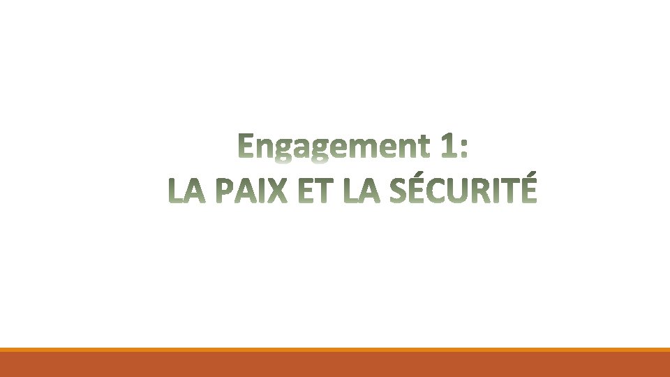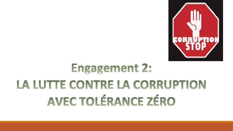 Gouvernance: PIVOT DE L’EMERGENCE Objectif: améliorer la gouvernance üSécurisation des zones rurales et instauration d’un climat de sécurité dans les villes en dotant de matériel les forces de l’ordre; üPromotion de la proximité et de l’accès aux services judiciaires et pénitentiaires pour le renforcement de la sécurité et de l’ordre public; üLutte contre la corruption avec tolérance zéro; üGestion des finances publiques transparente et saine et optimisation de la performance des recettes fiscales ; üAutonomisation et responsabilisation des collectivités territoriales décentralisées dans la prise de décision et en matière budgétaire et financière; üRenforcement de la planification, de l’organisation et de la structuration du territoire.