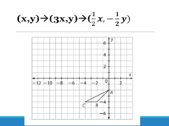 Apply the combination of transformations to see what the end image should look like (x, y) (x+1, y-3) (x, -y) A (1, 3) B(3, 4) C(-2, 3)