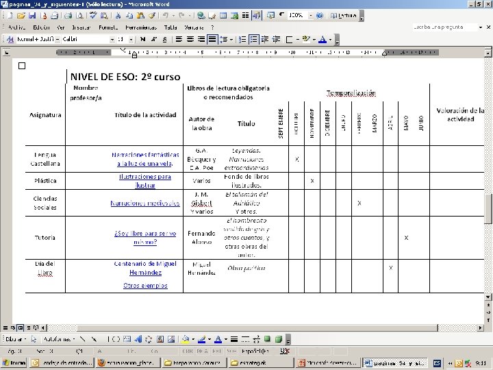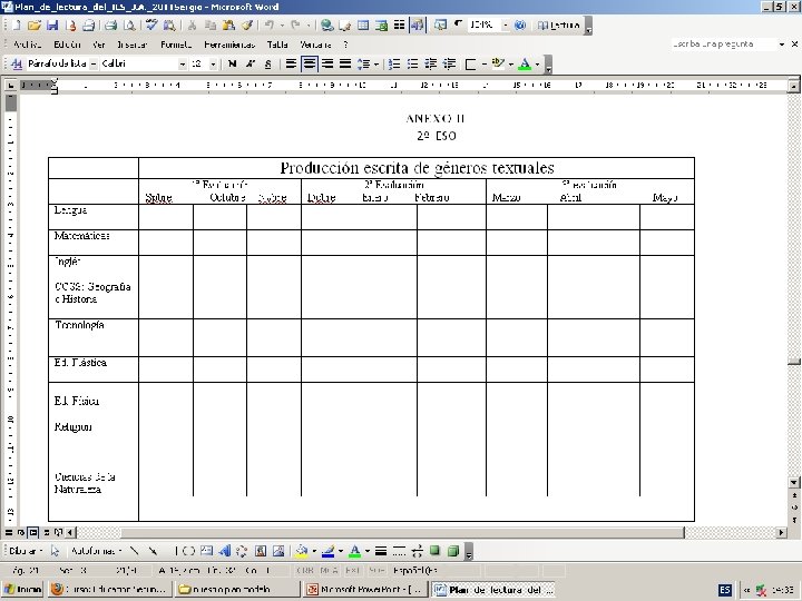 3. EL PLAN EN LA ACTUALIDAD. PLAN INSTITUCIONAL DE MEJORA DE LA LECTURA EN EL 2010 -2011 COMPRENSIÓN LECTORA EN E. PRIMARIA COMPRENSIÓN LECTORA EN E. SECUNDARIA LECTURA EL PLAN DE LECTURA DE CADA CENTRO (E. SECUNDARIA) SEMINARIO DE BILIOTECAS ESCOLARES LEER E INVESTIGAR EN LA BIBLIOTECA: PROYECTOS DOCUMENTALES INTEGRADOS