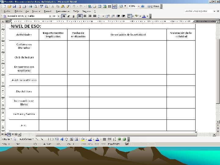 NIVEL 2. Regular Se entiende que la lectura es una competencia básica que debe ser abordada desde todas las áreas, para lo cual resulta suficiente el desarrollo pleno de los currículos oficiales o quizá una declaración de intenciones y una mayor conciencia del profesorado. No se ve la necesidad de un plan específico de lectura que suponga un trabajo en grupo, reuniones y elaboración de documentos. Se considera que el plan de biblioteca, si existe, más o menos funciona porque tiene un coordinador muy entusiasta y a lo largo del curso se hace alguna actividad de animación lectora