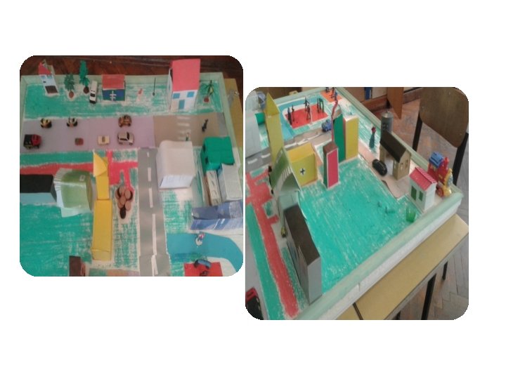 Izrada makete Zadnji zadatak ovog našeg projekta bio je i najzanimljiviji. Od igračaka, kartonskih kutijica, plastelina, autića, ljudi, drveća, životinjica, kolaža, kreda u boji i dr. , izradili smo maketu škole i njezine bliže okolice.