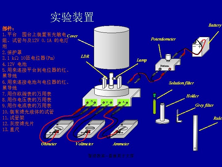 部件 Battery Cover Potentiometer LDR Lamp Platform Solution filter Holder V A Grey filter Ruler Ohmeter Voltmeter Ammeter 智浪教育--普惠英才文库