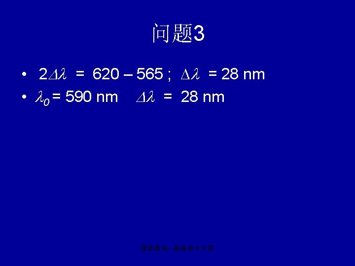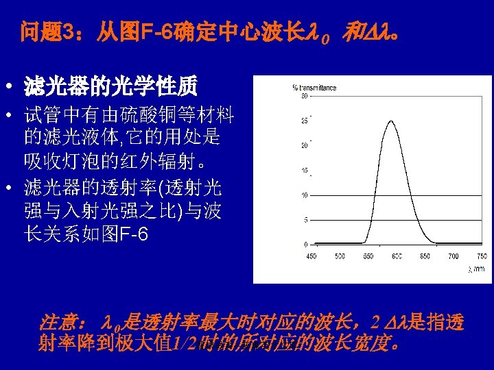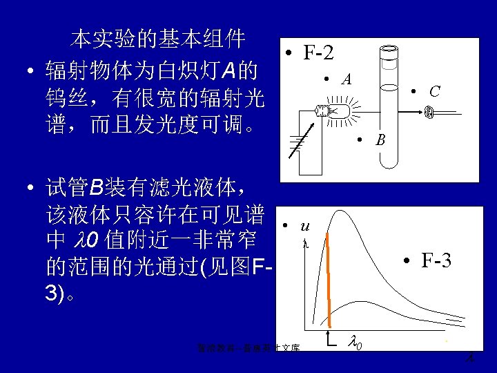 滤光液体的透光波长 Solution of: - Orange II. - Cu. SO 4 (it absorbs the infrared light). 0 = 590 nm 智浪教育--普惠英才文库 /nm