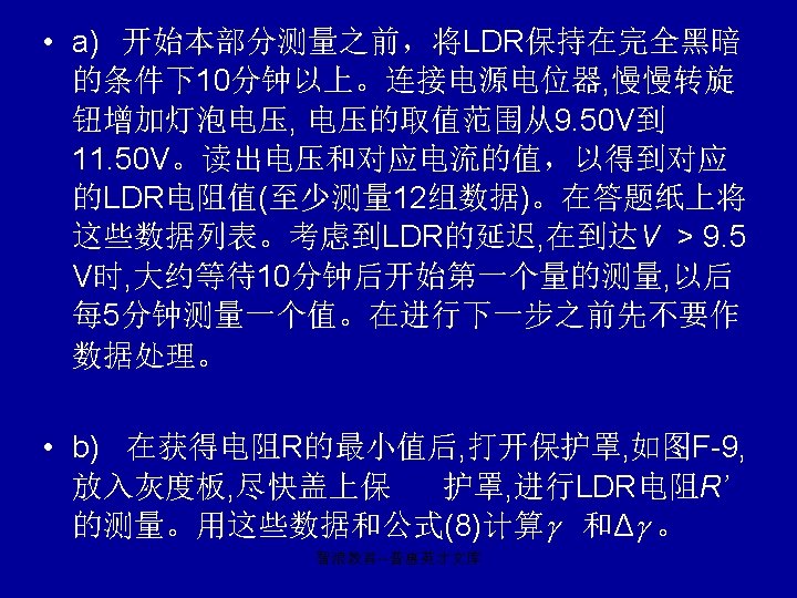 实验装置: Solution filter Potentiometer LDR Lamp Ohmeter Battery Voltmeter V A Ammeter 智浪教育--普惠英才文库