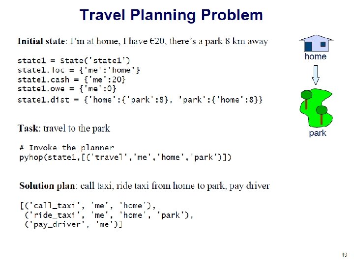 Biblioteca de Planos • Uma ideia fundamental é o ganho de eficiência pelo reuso de planos previamente construídos – A partir de experiências passadas. . . – É necessário ter poder de generalização • Passar protetor solar antes de ir à praia, independente de qual seja o nome da praia. . .