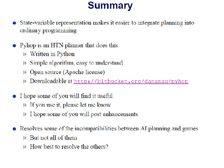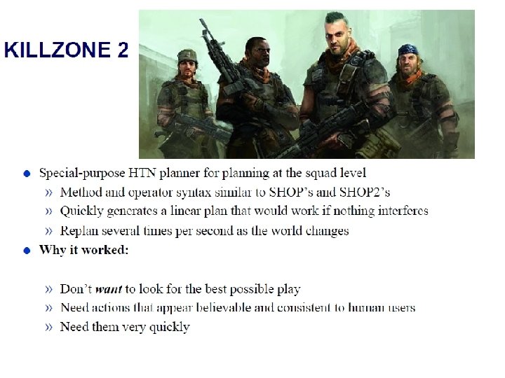 Planejamento em Jogos Slides selecionados de “Game Applications of HTN Planning with State Variables, Dana Nau, Dept. of Computer Science, and Institute for Systems Research University of Maryland