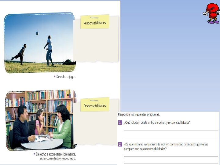 Abre el libro en las páginas 186 -187, 186 -187 completa las actividades de tu libro escribiendo la responsabilidad que conlleva cada derecho: