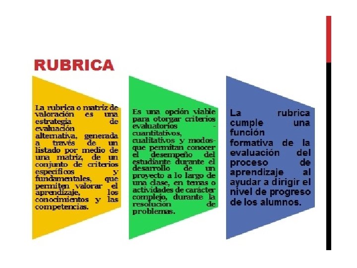 HAY DOS TIPOS DE RÚBRICAS COMPRENSIVAS (HOLISTAS). SE TRATA DE VALORACIONES GENERALES QUE NO INVOLUCRAN NECESARIAMENTE UN LISTADO DE NIVELES DE EJECUCIÓN O RUBROS. RUBRICAS ANALÍTICAS. INVOLUCRAN RESPUESTAS MUY BIEN ENFOCADAS A UNA SERIE DE CONCEPTOS O RUBROS, JUNTO CON LA ESCALA DE EVALUACIÓN CORRESPONDIENTE, DEFINIENDO CADA UNO DE LOS DESCRIPTORES.