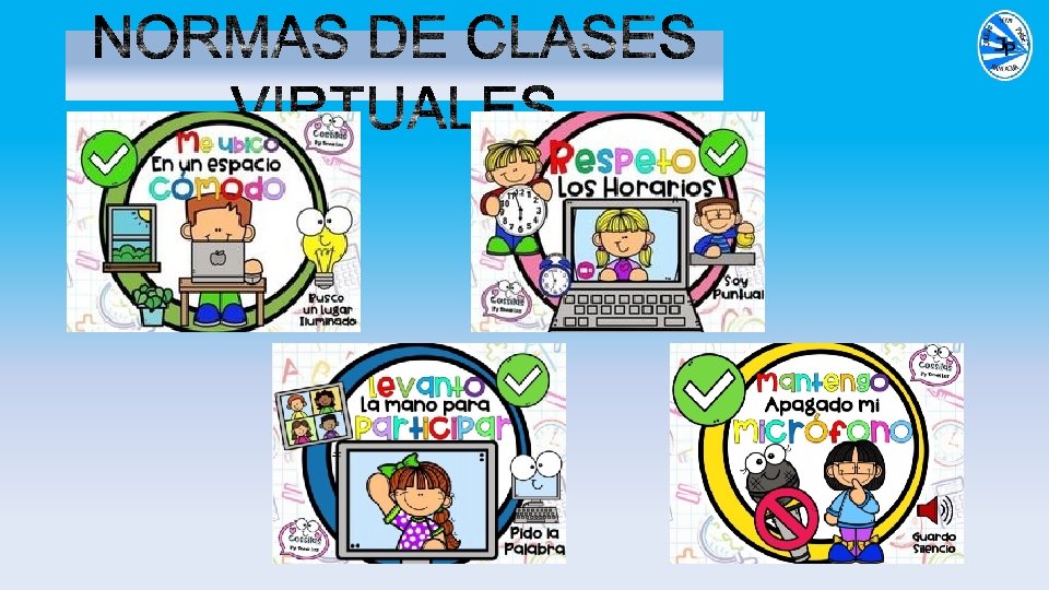 MICRÓFONO CHAT CÁMARA Deben mantener el micrófono apagado y sólo encenderlo cuando se le pida la palabra o desee hablar. Deben utilizar el chat para comunicar desperfectos técnicos, , preguntas del contenido de clase y registrar asistencia. Deben mantener la cámara encendida en todo momento.