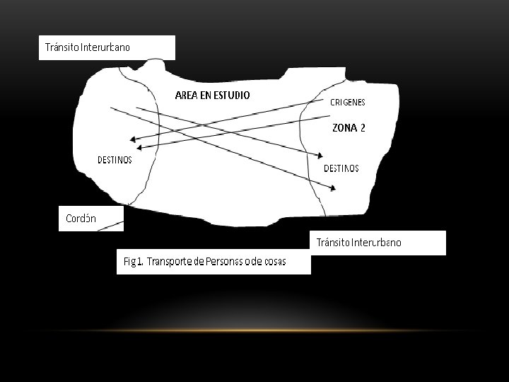 RELACION TRÁNSITO / TRANSPORTE • Como se puede ver, los conceptos Tránsito y Transporte están estrechamente relacionados, de modo que en general todo vehículo en movimiento - lo que constituye tránsito - cumple con objetivos específicos de transporte de personas o de cosas entre un punto de origen y otro de destino, como se indica en el esquema de la Fig. 1