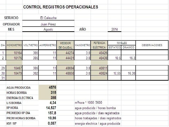 POZOMETRO Medir niveles estático y dinámico a lo menos 1 vez por semana