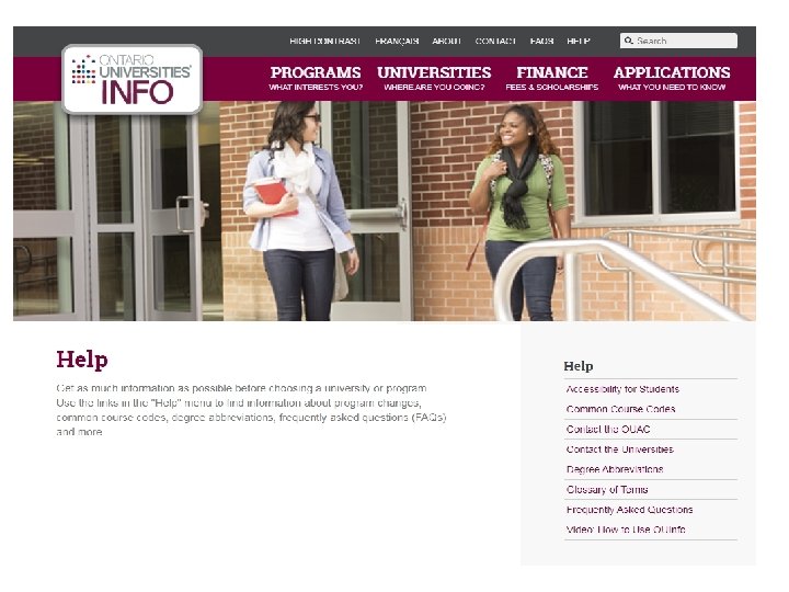 Explore Program Options Ontario Universities’INFO Online Guide • The comprehensive guide to Ontario universities for secondary school students http: //www. ontariouniversitiesinfo. ca