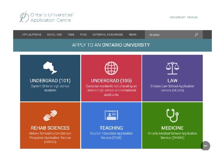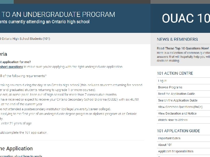 Where to Apply Ontario University Application Centre OUAC = Ontario University Application Centre (located in Guelph, Ontario) www. ouac. on. ca/ouac-101 - online instructional video is available • Universities outside Ontario – apply on individual web sites (separate fee)