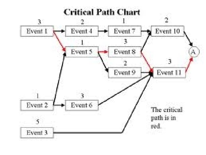 b b b Identify task durations. Using the knowledge of team members, reach a consensus on the most likely amount of time each task will require for completion. Duration time is usually considered to be elapsed time for the task, rather than actual number of hours/days spent doing the work. Document this duration time on the appropriate task cards. Construct the PERT chart. Number each task, draw connecting arrows, and add task characteristics such as duration, anticipated start date, and anticipated end date. Determine the critical path. The project’s critical path includes those tasks that must be started or completed on time to avoid delays to the total project. Critical paths are typically displayed in red.