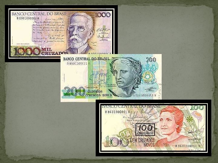 Moedas do Brasil Até 1942: Real (Réis) De 1942 a 1967: cruzeiro De 1967 a 1970: cruzeiro novo De 1970 a 1986: cruzeiro De 1986 a 1989: cruzado De 1989 a 1990: cruzado novo De 1990 a 1993: cruzeiro De 1993 a 1994: cruzeiro real e Unidade Real de Valor (URV) De 1994 até hoje: Real