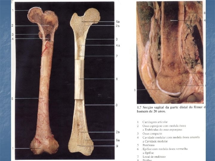 Corte transversal ao nível da diáfise de um osso longo. Osso compacto Osso esponjoso Canal medularmedula óssea amarela