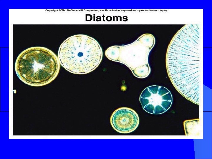 Protists l l l Most one-celled Make their own food or feed on once living things Examples: Algae, amoebas, diatoms