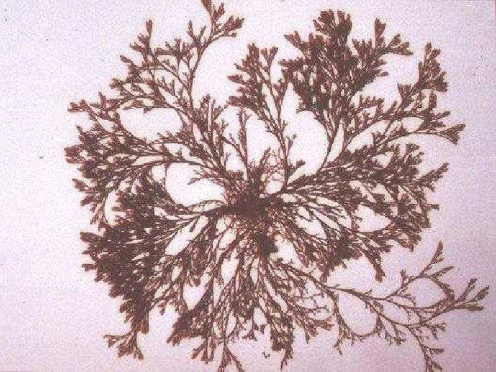 Red Alage z. Seaweeds - large multicellular marine algae occurring in coastal waters often attached to rocks z. Highly branched filaments with a feathery appearance or sheet-like z. Many used as a food source z. Carrageenan and agar: cell wall carbohydrates used as stabilizing agents