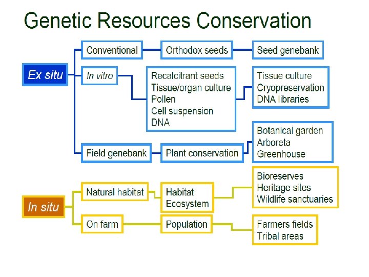 Plant Genetic Resources • Plant genetic resources – Genotypes of particular species, collected from different sources and geographical origins, for use in plant breeding to develop new cultivars • Germplasm of a crop may be defined as – The sum total of hereditary material i. e. all the alleles of various genes, present in a crop species and its wild relatives Plant Genetic Resources