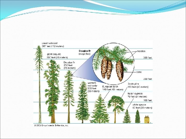 Plants with seeds but no fruit GYMNOSPERMS �Seeds are not enclosed in a fruit. Conifers are the most common gymnosperms. �They are trees; they have thin and waterproof leaves. �The majority are trees. The flowers are the cones that contain their reproductive structures. Unisexual. �Female cones: larger than male cones. Central axis and sclaes arranged in a spiral shape around it. Each scale contains two ovules. �Male cones: smaller and grow in clusters. The scales contain millions of pollen grains. �A pine tree’s seed is called pine nut.