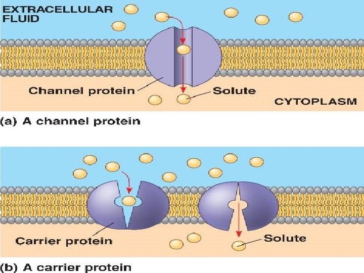 Channel proteins • Channel proteins form a charged-lined, waterfilled channel that extends across the membrane • Diffusion through channel is dependent hydrated size of ion because associated water molecule must diffuse along with ion • The number of ion channels discovered in plants is increasing • Currently there is solid evidence for K, Cl and Ca channels • Channel proteins are frequently gated i. e open or closed