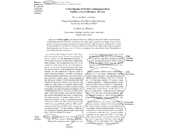 Abbreviations "x" = a hybrid. E. g. , Salvia xpalmeri (A. Gray) Greene = S. apiana x S. clevelandii. "sp. nov. " = species novum E. g. , "Eryngium pendletonense sp. nov. " "cf. " = confer, meaning "compare. ” E. g. , "Calyptridium cf. monandrum” (meaning check this specimens of species for confirmation) aff. (affine) means “related to” E. g. , Cryptantha aff. wigginsii (meaning something different but a close relative to this species)