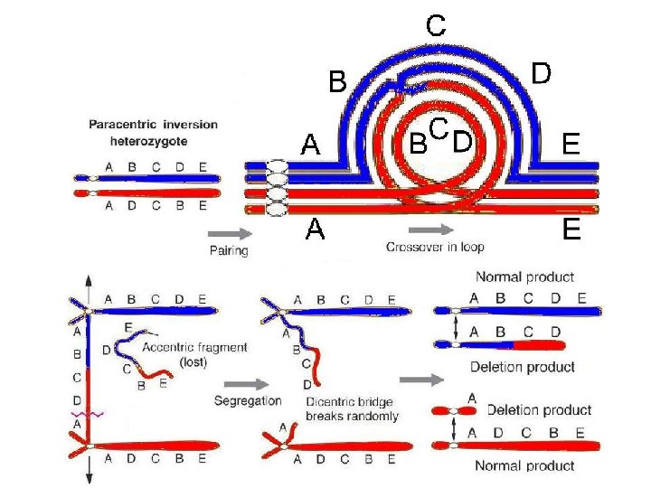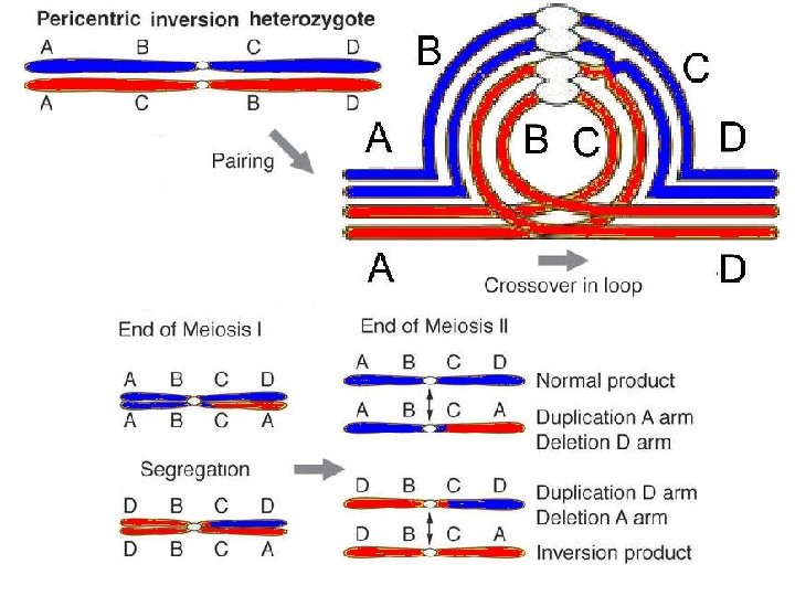 Types of Rearrangements 1. Inversions - paracentric (centromere outside inversion) - pericentric (centromere inside inversion