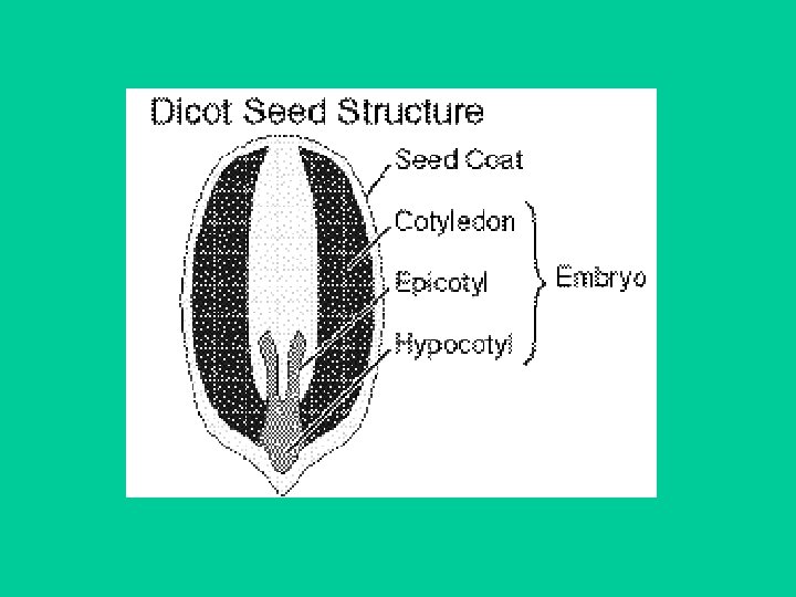 Seed formation • • Post fertilization Wall of ovule = hard seed coat Zygote divides = embryo Triploid central cell = endosperm