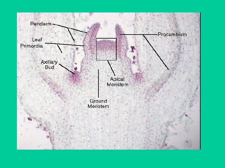 Growth • Meristem tissue - source of new cells in plant growth • apical meristem - produce growth in length (primary growth) lateral meristem - produce growth in thickness (secondary growth)