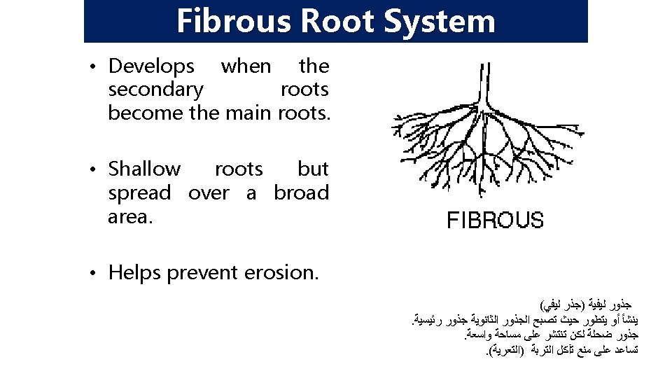 Root Types: Adventitious & Tap Root System ﺍﻟﺠﺬﻭﺭ ﺍﻟﻌﺮﺿﻴﺔ ﻭﺍﻟﺠﺬﻭﺭ ﺍﻟﻮﺗﺪﻳﺔ : ﺃﻨﻮﺍﻉ ﺍﻟﺠﺬﺭ Copyright © Mc. Graw-Hill Companies Permission Required for Reproduction or Display Fibrous root Taproot Copyright © Mc. Graw-Hill Companies tap. Permissi