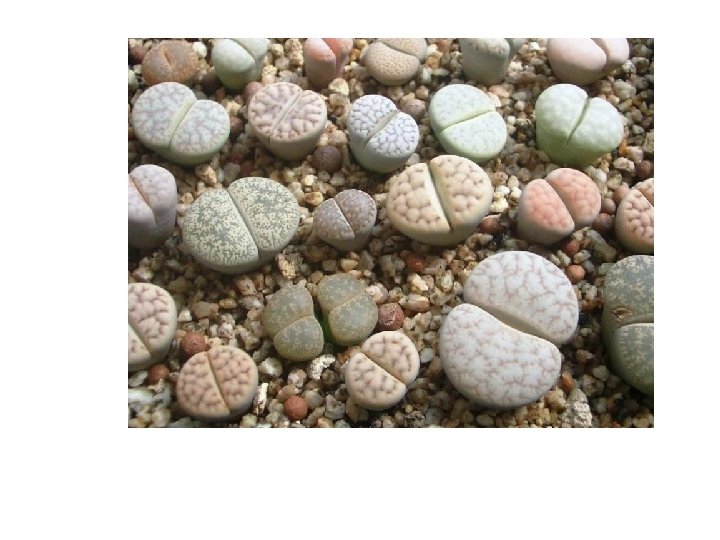 Cebola das gaivotas. Ten cores craras e está cuberta de cera, para reflectir a calor, e o bulbo moi enterrado. Crucianella maritima. Ten as follas reducidas e apretadas, de cor crara e cubertas de cera, e as raices longas e fondas.