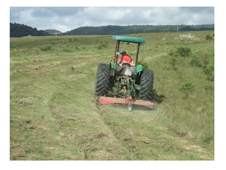 Plantas Daninhas em Pastagens Controle mecânico O controle mecânico de arbustos mediante o emprego de correntes e grades pesadas tem dado bons resultados em terrenos planos ou levemente ondulados. O complemento desse método deve ser feito arando o terreno seguido do plantio de uma gramínea promissora. Também a roçagem e o arranquio das invasoras tem sido praticados. A queima, apesar de ser bastante questionada, é muito utilizada. Um dos maiores benefícios desse método consiste em evitar que as plantas invasoras entrem em fase de reprodução, o que aumenta o potencial de infestação via banco de sementes. Assim, a intervenção deve ser sempre antes que as plantas invasoras atinjam a fase reprodutiva. Esse método pode ser realizado via roçagem manual, arranquio, roçagem mecanizada, gradagem e aração.