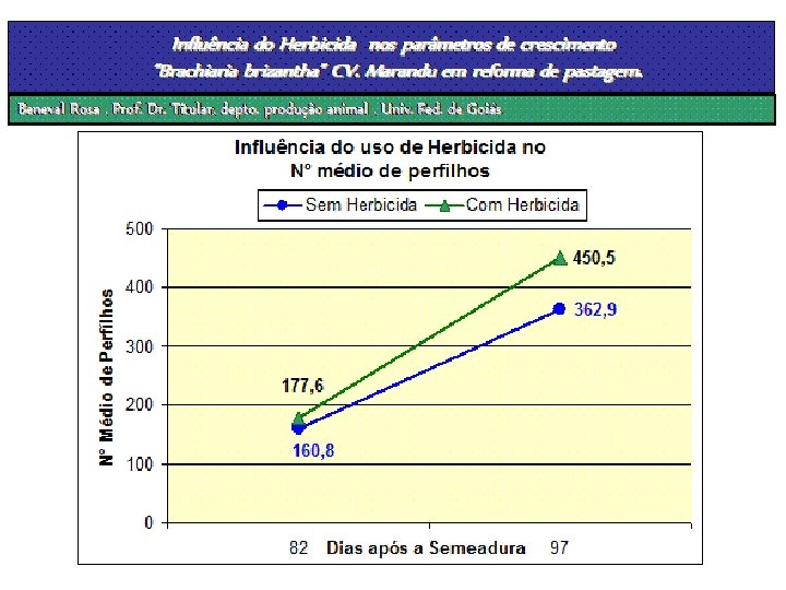 Plantas Daninhas em Pastagens A competição com as plantas daninhas provoca um atraso no estabelecimento das gramíneas forrageiras, atrasando o desenvolvimento da parte aérea, do sistema radicular e reduzindo o perfilhamento. Estudo realizado por Rosa et al. ( 2001 ) mostra que o uso de herbicida para controle de plantas daninhas em reforma de pastagem proporciona um maior número de perfilhos da gramínea forrageira quando comparado a uma reforma de pastagem onde as plantas daninhas não foram controladas e competiram com o capim. Isso explica a demora de até 1 ano para a plena utilização da capacidade de suporte da pastagem.