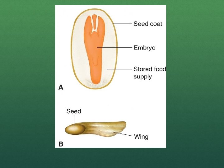 Seeds are dispersed by animals, wind, and water. Seeds dispersed by animals are typically contained in fleshy, nutritious fruits. Environmental factors such as temperature and moisture can cause a seed to end dormancy and germinate