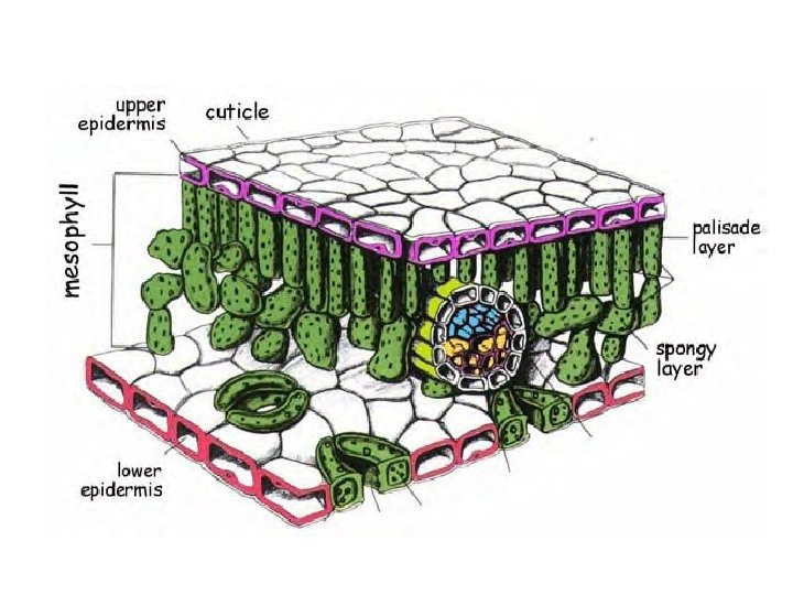 Leaves Site of gas exchange • Gases CO 2 and O 2 enter and exit thru stomata Stomata – small openings on the surface of leaves (underside) Photosynthesis Recall, plants also “breath”