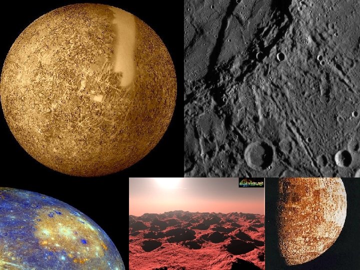 Merkúr • Druhá najmenšia planéta • Planéta nemá ročné obdobia • Merkúr má veľmi riedku a nestálu atmosféru • Viditeľný povrch Merkúra pokrývajú krátery. • Merkúr navštívila iba jedna kozmická sonda a to Mariner 10, nasnímala bohužiaľ len jednu stranu planéty